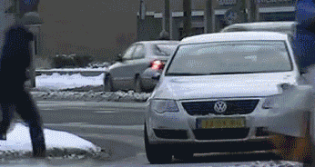 Lady kicks snow at cat, cat retaliates, with spectacular results. Good. The mean bitch deserved it.