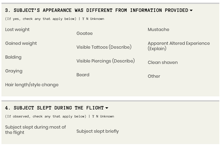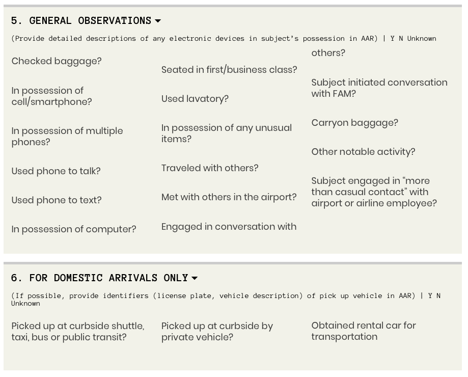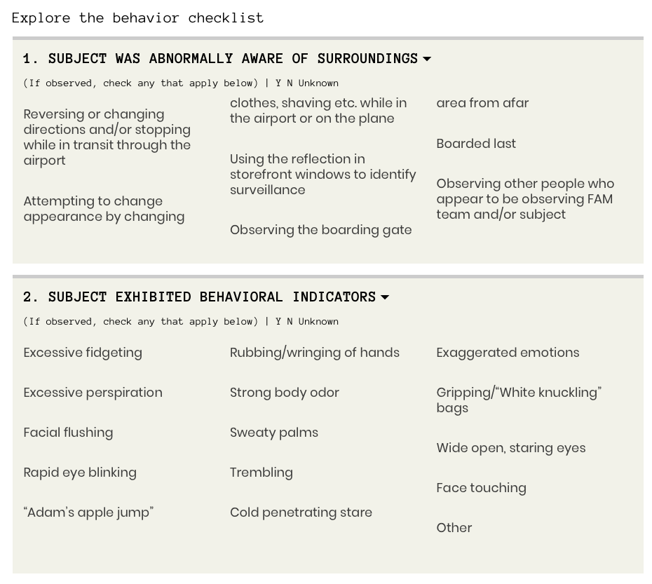 This is stuff is just laughably bad -- like a multiple choice test for slow-witted behavioral profilers looking to ferret out people doing normal human things in airports and on planes.
