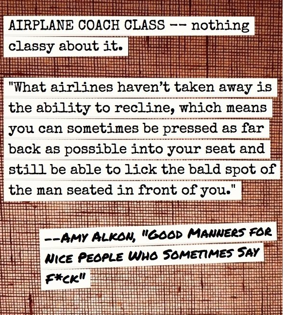 That would involve selling "economy plus" seats as "barely-" or "semi-civilized." From my book, "Good Manners for Nice People Who Sometimes Say F*ck":![]()