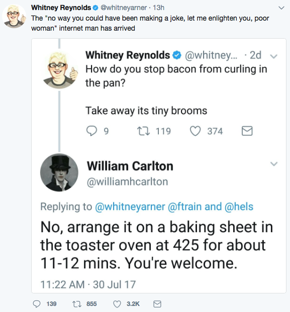 Now, of all the things you could assume motivated the guy, well, could it be possible he just wanted to riff on that in the way he enjoys? The reality is, if you say anything about bacon on Twitter, five people will retweet or respond -- typically out of what I call baconjoy.