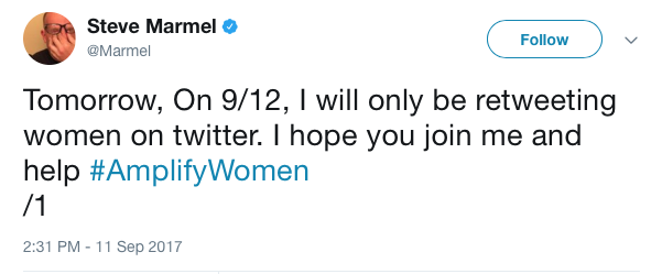I can't think of anything more insulting than to be retweeted simply because I was born with a vagina. Don't "amplify" me unless I earn it. https://t.co/wGoJU4bNtw