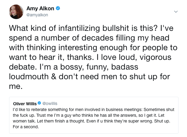 Some Mr. Progressive, Oliver Willis, thinks women need men to pander to them so they can be heard.