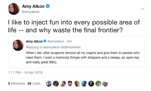 I didn't realize I had so much company in my thinking about how to stage my send-off. (My tweet on that is at the bottom of the post.)