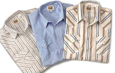 Here's one of these: ELY CATTLEMAN Men's Assorted Plaid Or Stripe Short Sleeve Western Shirt Big. (Big means "beeg guy," as our friend Laurent refers to Gregg. Big 'n' tall.) $18.35 - $27.99 at Amazon.