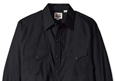 If you are not such a beeg guy, here are the solids in regular-guy sizes. ELY CATTLEMAN Men's Long Sleeve Solid Western Shirt: $29.50 in white. There are some XXLs still. Black one in XXL is just $16.88. Whole slew of sizes and colors and patterns here, including shirts for ladies and kids.