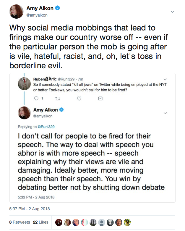 So as someone Lefty but Edgy, she fears that if we hold to this standard, one day they may come for her and her tweets.