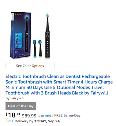 Up to 32% on Fairywill Personal Care Products, $17.95 - $25.85. This is a seriously great deal, if you look at the regular price! Also a travel model at the link.