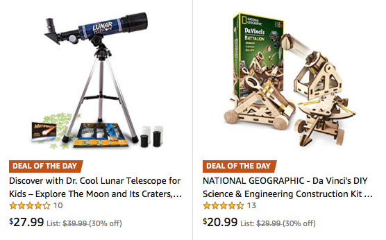 •Save up to 50% on Amazon's favorite STEM toys. $5.44 - $324.99.