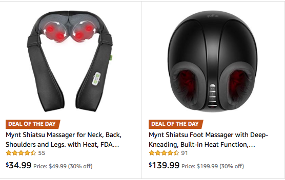 Today's Deal Of The Day at Amazon: Save 30% on Mynt - Enjoy a Massage Anytime, Anywhere. Regular prices, $39.99 - $199.99. Today only, $27.99 - $139.99.