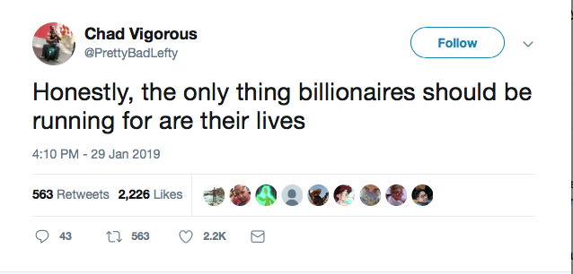 When they're done with the billionaires, they'll come for the millionaires. When they're done with them, it'll be the thousandaires.