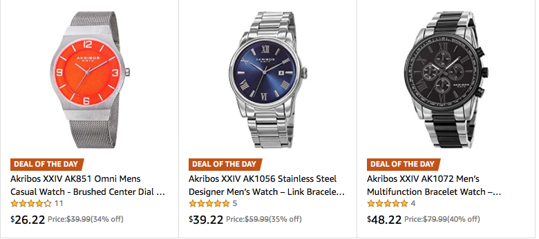 Today's Deal at Amazon: Up To 40% Off on Designer Watch Brands for Him and Her. $26.22 - $48.74. Love the orange-faced one for dudes.