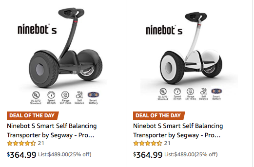 Today's Deal at Amazon: Save 25% on Segway Ninebot S self-balancing transporter. List: $489.00. Today only, $364.99.