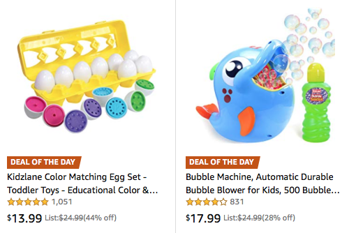 Today's Deal at Amazon: Save up to 44% on Toddler Toys - Bubble Machine for Kids & Educational Egg Set.