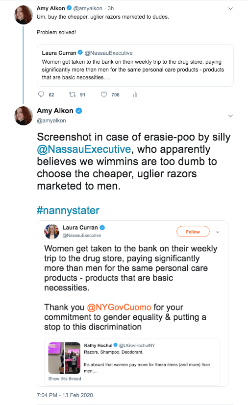 I wonder why it never occurs to people like @NassauExecutive and Governor Cuomo to take five minutes to Google "difference between men's and women's razors" before they start ranting about discrimination.