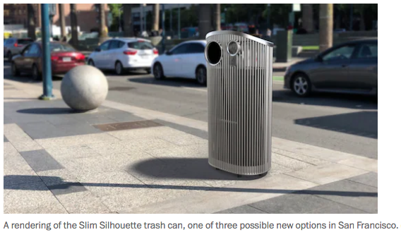 What is bright, shiny, sits on a sidewalk and costs $12,000?In San Francisco, the answer is: Why, a trash can, of course!
